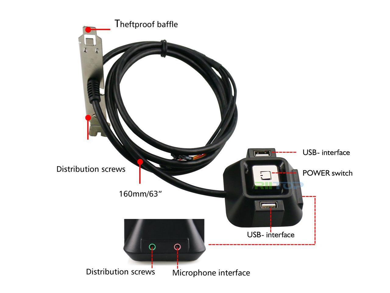 RIITOP Computer Power Button Switch Reset + Dual USB Hub Ports + Power On Button + Audio Ports for Desktop Computer Case