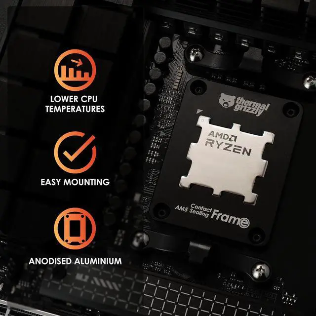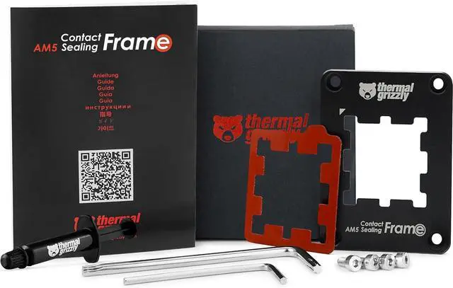 The AM5 Contact & Sealing Frame is a combination of Contact Frame and CPU-Guard for AMD's Ryzen-7000 processors. As a Contact Frame, the AM5 Contact & Sealing Frame creates optimal contact pressure of the CPU into the socket, while an optional, included inlay made of silicone foam serves to protect the exposed components on the CPU.