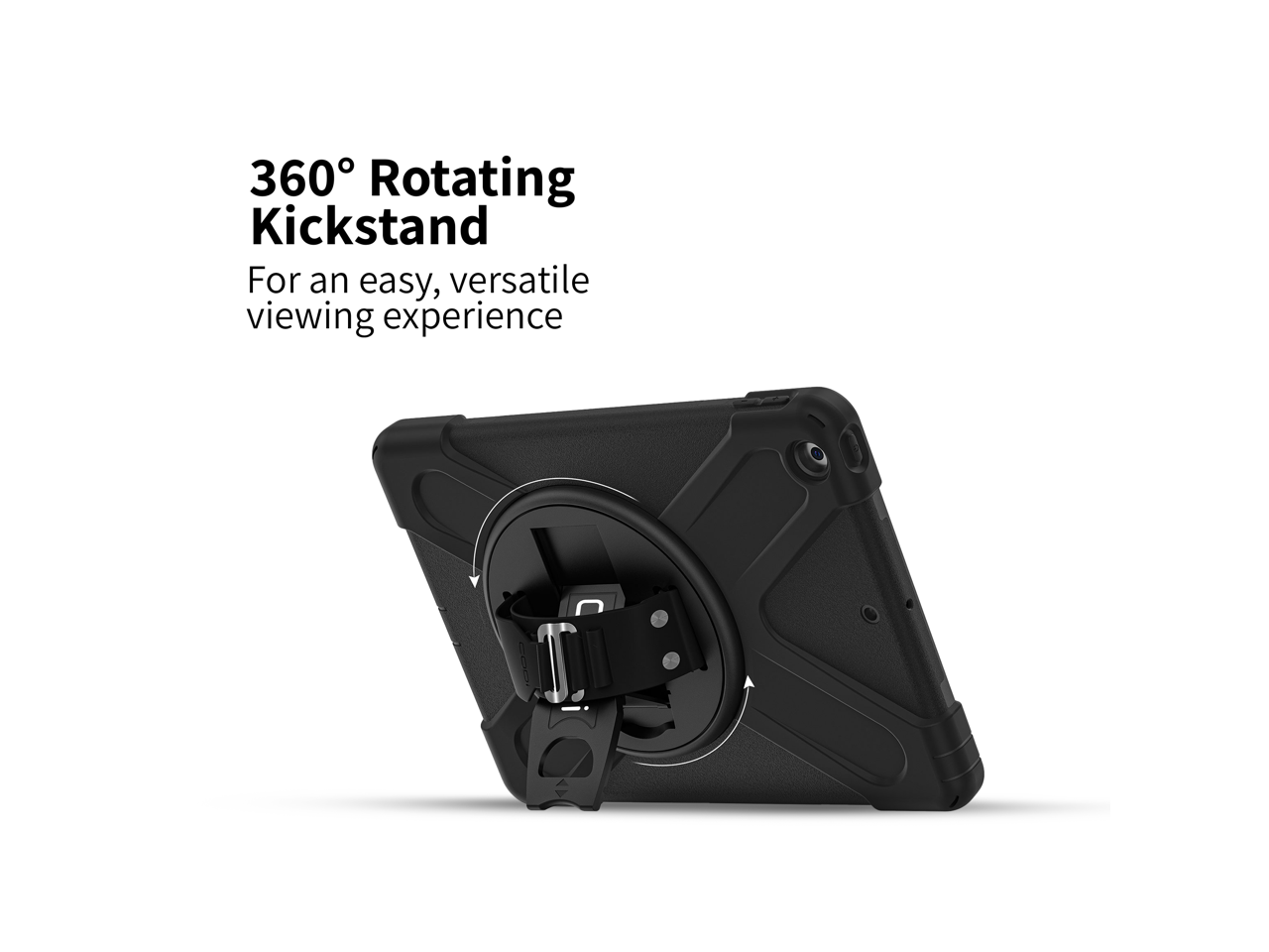 - Integrated rotating kickstand supports portrait and landscape viewing