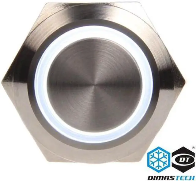 Our momentary "Bulgin" style switches are ideal as replacement "Power" or "Reset" switches in your custom PC. Our momentary switches feature an illuminated white LED ring that is easy to see both during the day and night and can easily be installed into a 5.25" bay.