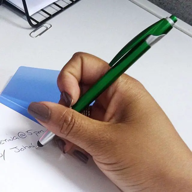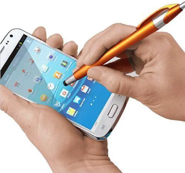 CLICK! IT'S A PEN CLICK! IT'S A STYLUS Our stylus tip pens have an interchangeable tip so that you can use it on paper, tablets, & phones. Click back & forth between a stylus and ballpoint tip for your convenience.