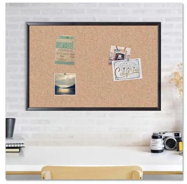 U Brands Cork Bulletin Board 36"x24" Black Wood Frame