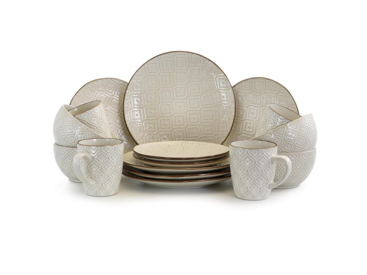Elama White Lily 16 Piece Luxurious Stoneware Dinnerware with Complete Setting for 4