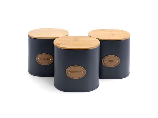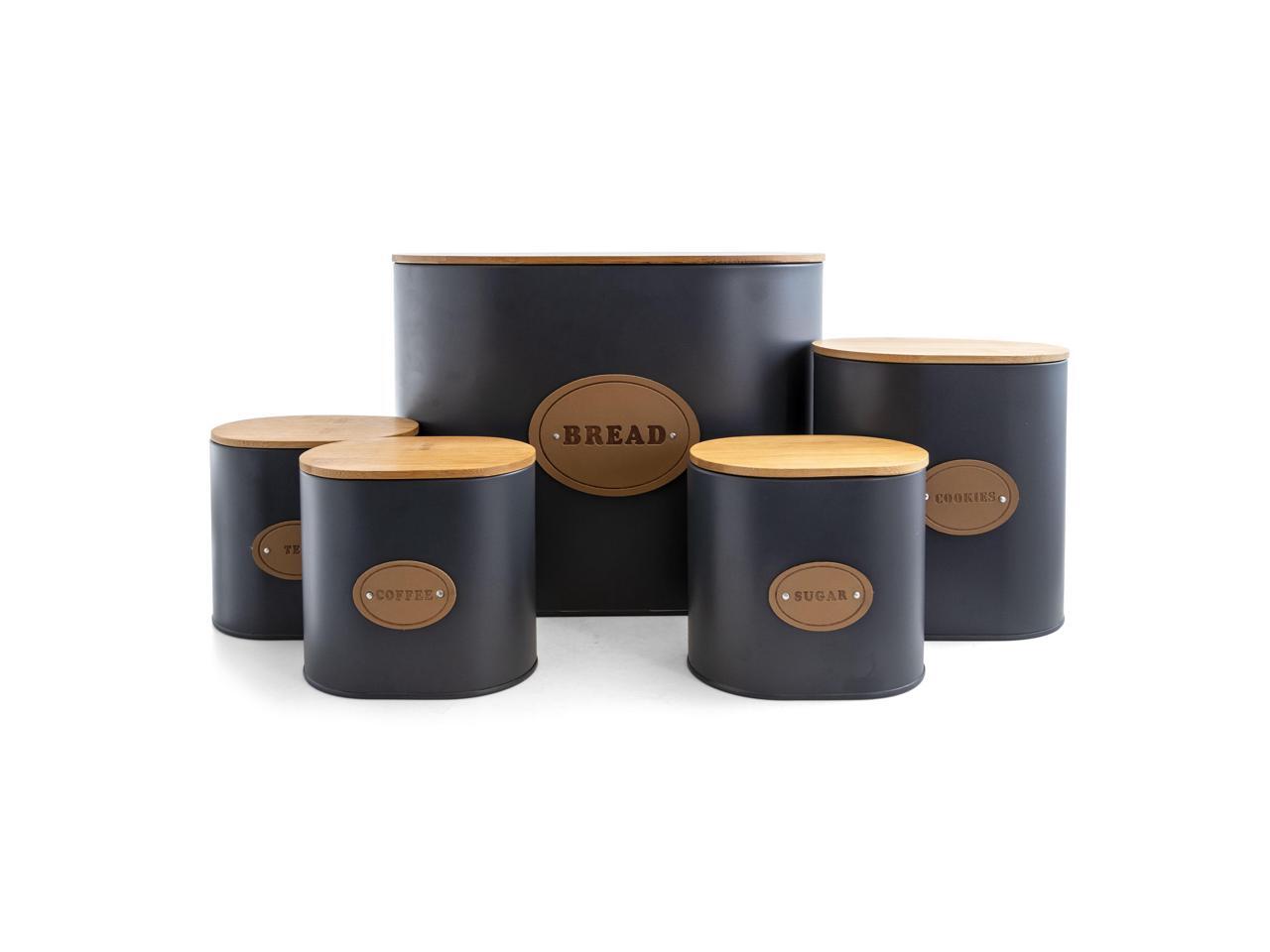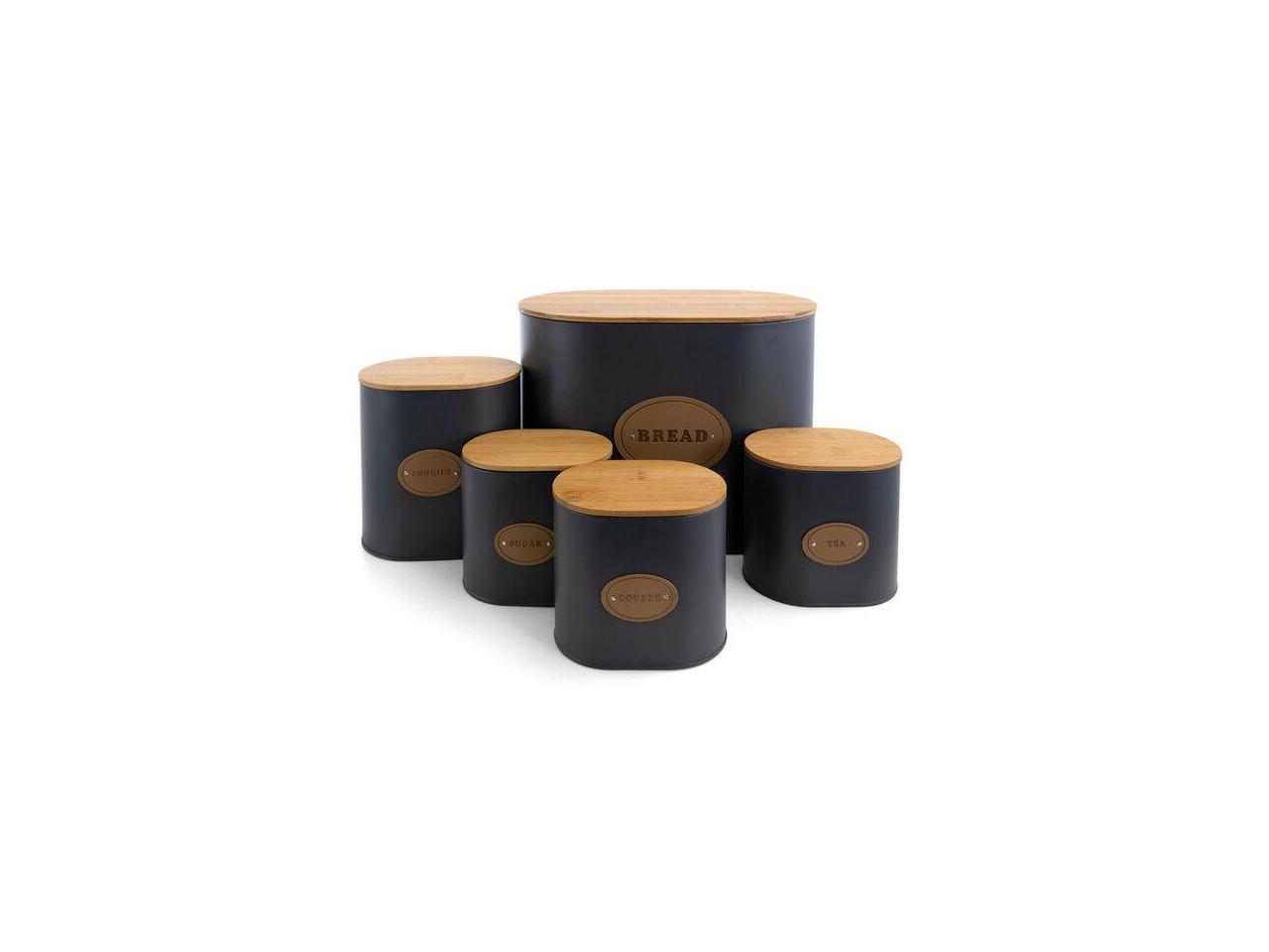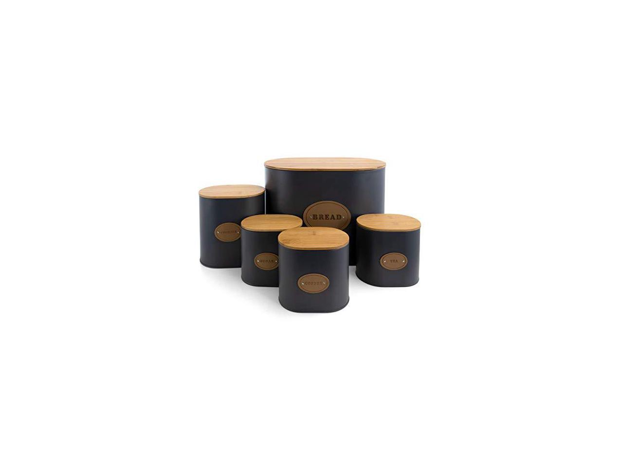 MegaChef Kitchen Food Storage and Organization 5 Piece Canister Set in Grey with Bamboo Lids