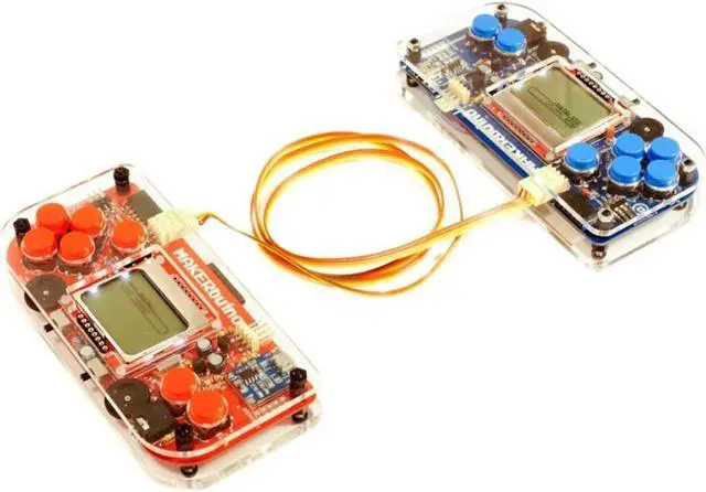Rbuino series game console to each other, allowing you to play in multiplayer mode without the need to connect the console via a Wi-Fi network. The console communication takes place using the built-in I2C interface. A single connecting cable connects two MAKE