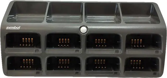 The SAC5070 8-Bay Battery Charger is an accessory for the RS507 Hands-free Imager and provides a quick way to recharge the Lithium-ion batteries that provide power for the RS507 Hands-Free Imager. One charger can hold up to eight batteries at a time. The 8-Bay Battery Charger supports both standard and extended capacity batteries.