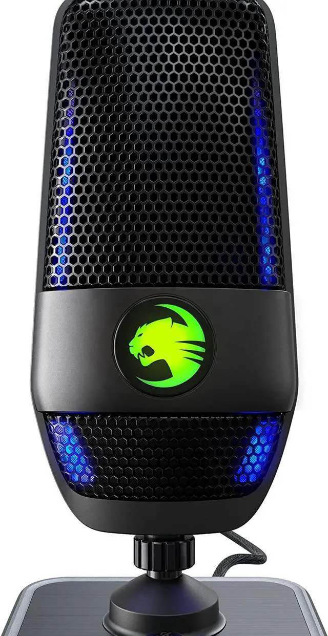 Meet the ROCCAT Torch Studio-Grade USB Microphone. Designed for aspiring creators and gamers alike the Torch will take you and your content to the next level. 24-Bit audio quality a dual condenser design latency free mic monitoring and an integrated pop guard ensure you always sound immaculate. Featuring three pick-up patterns Cardioid Stereo and the exclusive Whisper giving you the tools to play create and broadcast in any setting. Lightning-fast Contactless Quick Mute gives you instant control when it matters most. Compatible with a wide range of accessories such as shock mounts and boom arms the ROCCAT Torch evolves with your set-up.