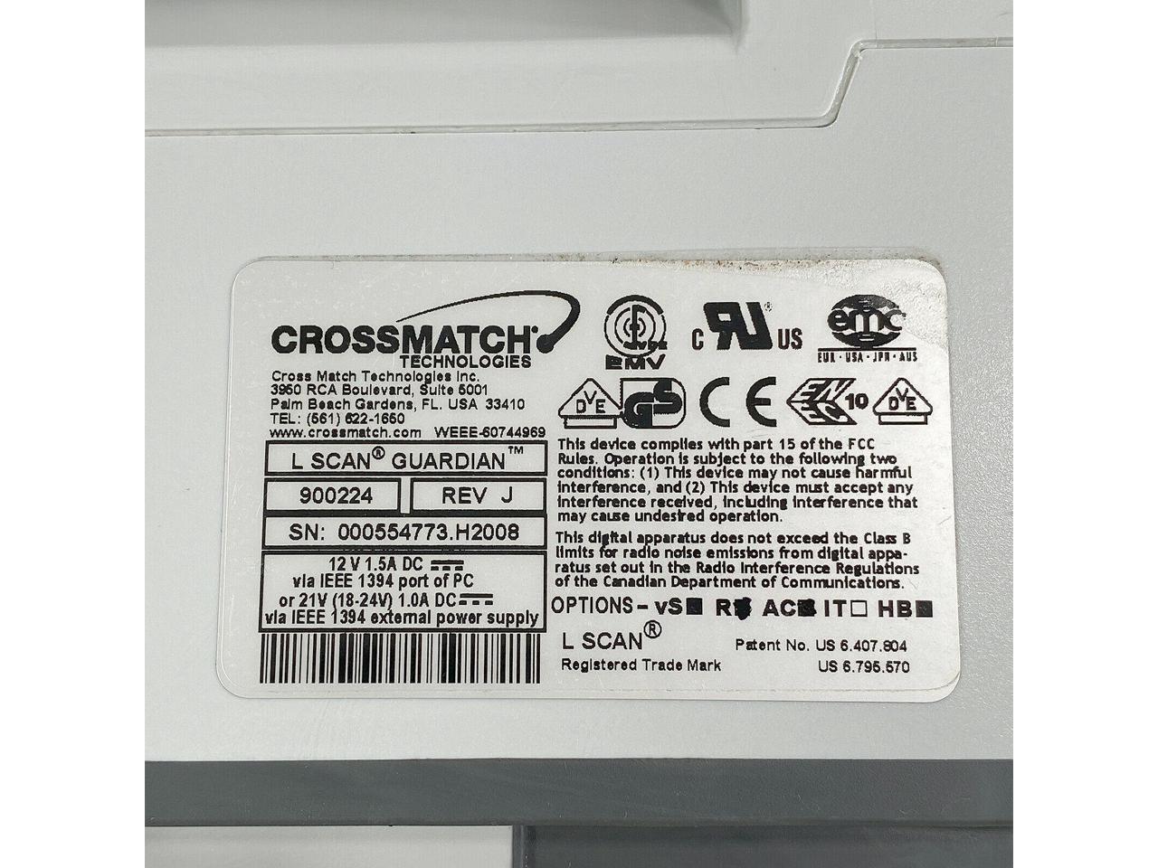 CrossMatch L Scan Guardian Fingerprint Scanner 900224 Rev.J FireWire IEEE-1394