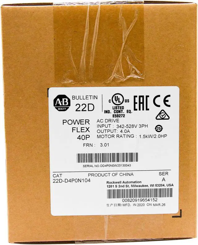 2020 Allen Bradley 22D-D4P0N104 PowerFlex 40P AC Drive 22DD4P0N104