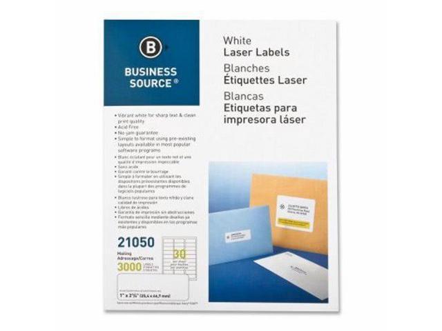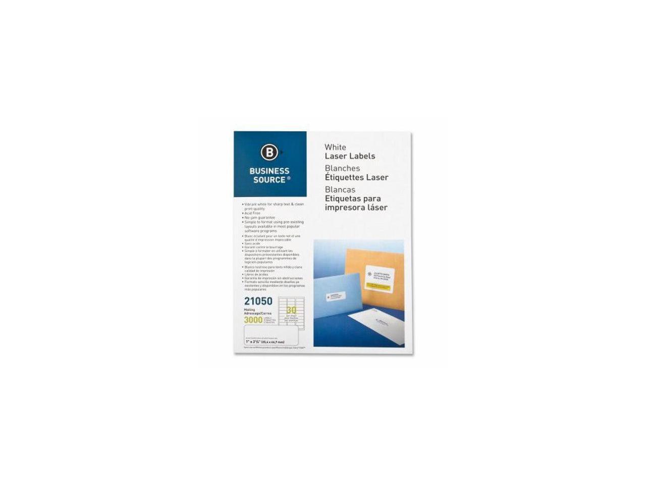 Business Source Mailing Label Laser 1"x2-5/8" 3000/PK White 21050
