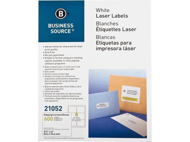 Business Source Mailing Label Laser 3-1/3"x4" 600/PK White 21052