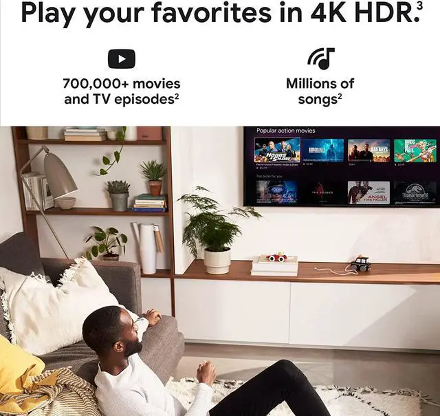 Google Chromecast Network Audio/Video Player - Wireless LAN - Snow - Dolby Atmos, Dolby Digital, Dolby Digital Plus - Internet Streaming - 4K UHD - 2160p - HDMI - USB