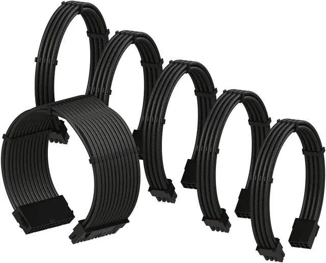 LINKUP - PSU Cable Extension Sleeved Custom Mod GPU PC Braided w/Comb Kit - Compatible with RTX3090?1 x 24 P (20+4)?2 x 8 P (4+4) CPU?3 x 8 P (6+2) GPU Set?30CM 300MM - Black