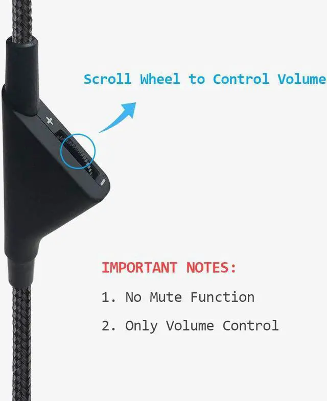 [Volume Control Function] - Scroll a wheel button to control the in-line Volume. This cable has no mute mic control and no mic output function.