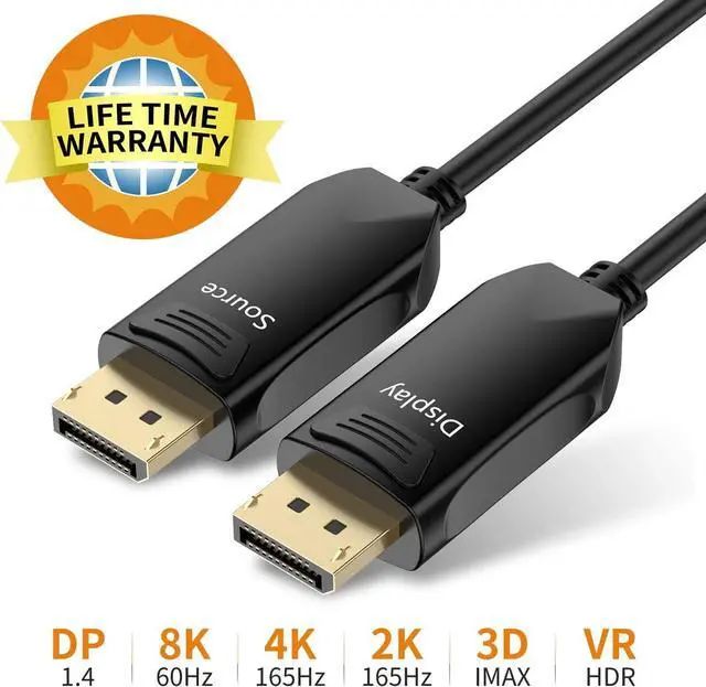 • ?Active DP 1.4 Fiber Optic Cable? This fiber dp cable is one-way transmission. "Source" plug for connecting DP source port, (blu-ray player, PC, ThinkPad, etc). "Display" Plug for connecting DP display device, (HDTV, monitor, projector etc). Plug and play.