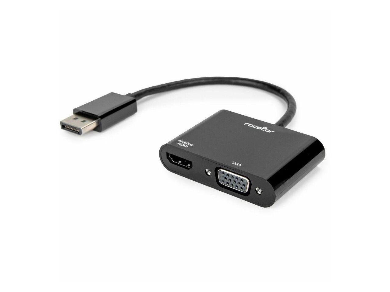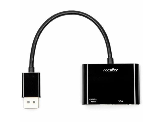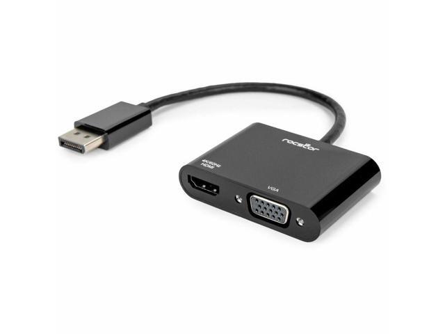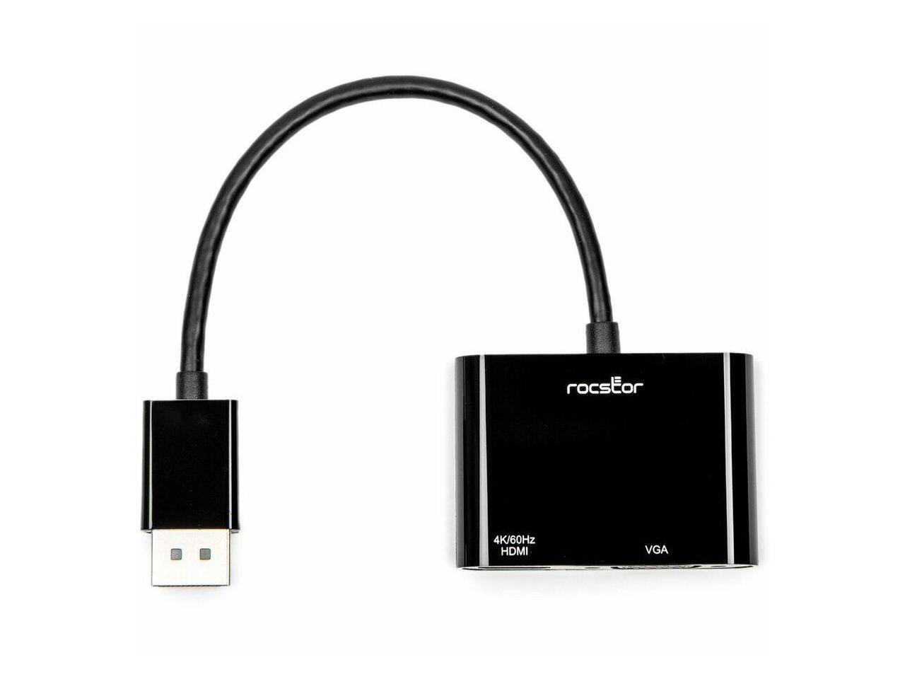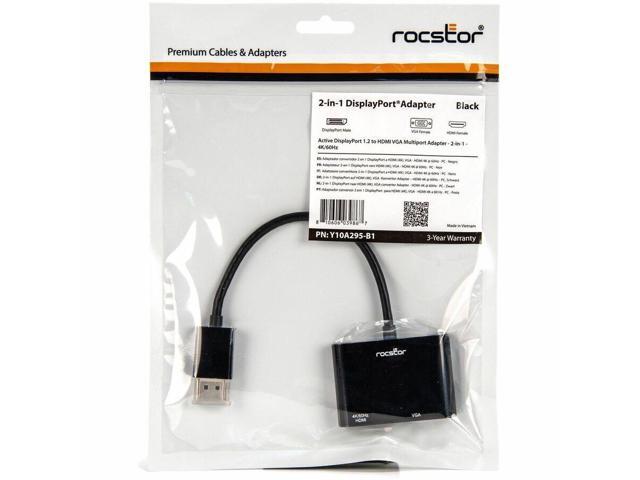 Rocstor DisplayPort 1.2 to HDMI & VGA Multiport Active Video Adapter – 4K/60Hz – Black