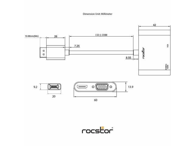 - • Supports HDMI 4K resolution up to 3840 x 2160 at 60 Hz and VGA HD 1920×1080 resolution