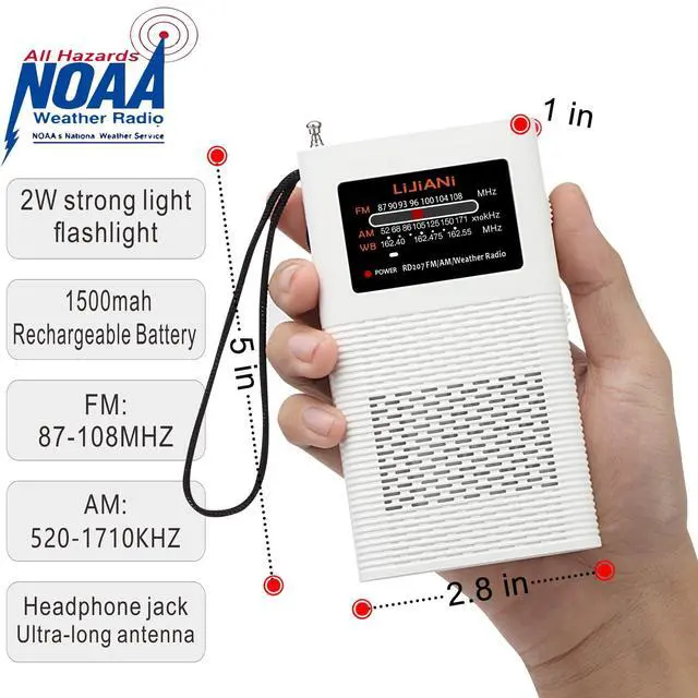 Powerful flashlight: Features a 2W strong light LED flashlight with an SOS alarm and a 15-inch long antenna for great reception and sound quality. Equipped with a headphone socket for outdoor use.
