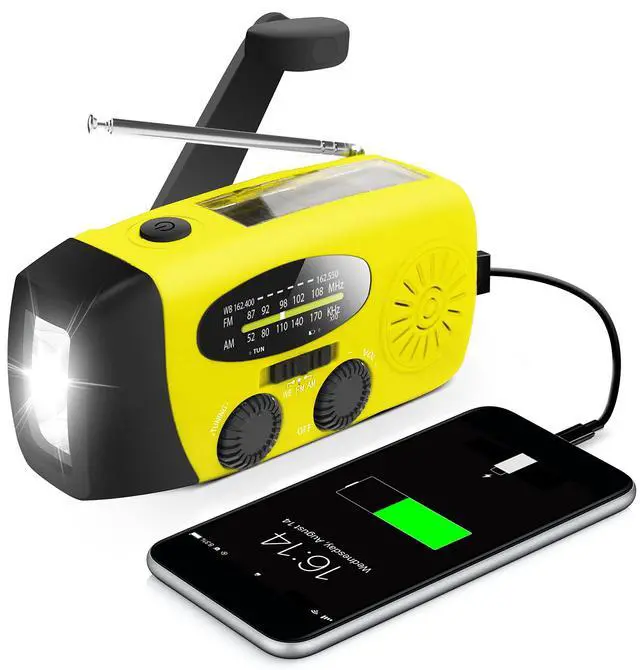 HOME & OUTDOOR NECESSARYAs reported, we used to experience several natural disasters per year like hurricanes and wildfires. This emergency weather radio will keep your family safe through it all. It can timely report emergency weather alerts in your areas to be well prepared; a 2000mAh built-in rechargeable battery to charge most devices until power is restored; a LED flashlight with rugged cover design could light up your darkness.