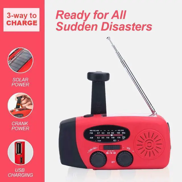 A Must Have Emergency Kit: This emergency radio is not just a regular survival weather alert radio, but also a self-powered LED flashlight and a 2000mAh power bank, with enough energy to charge your cell phone in case of an emergency. It's a multi-function hurricane earthquake supply.