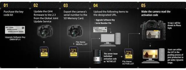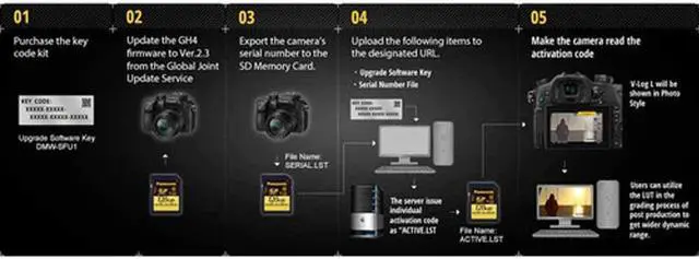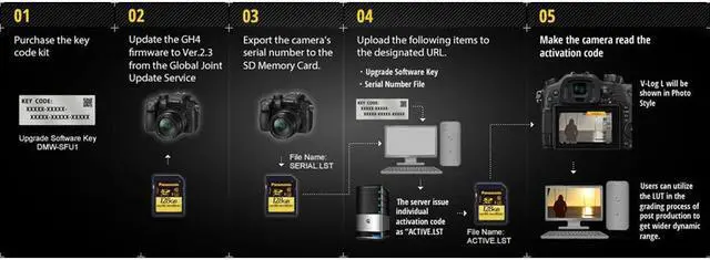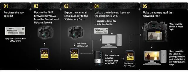 For use with compatible LUMIX USA warrantied version LUMIX cameras Enables log video recording (V-Log L) on LUMIX GH4, GH5, G9 and FZ2500 to offer exceptional flexibility in color grading process