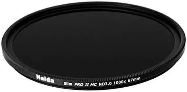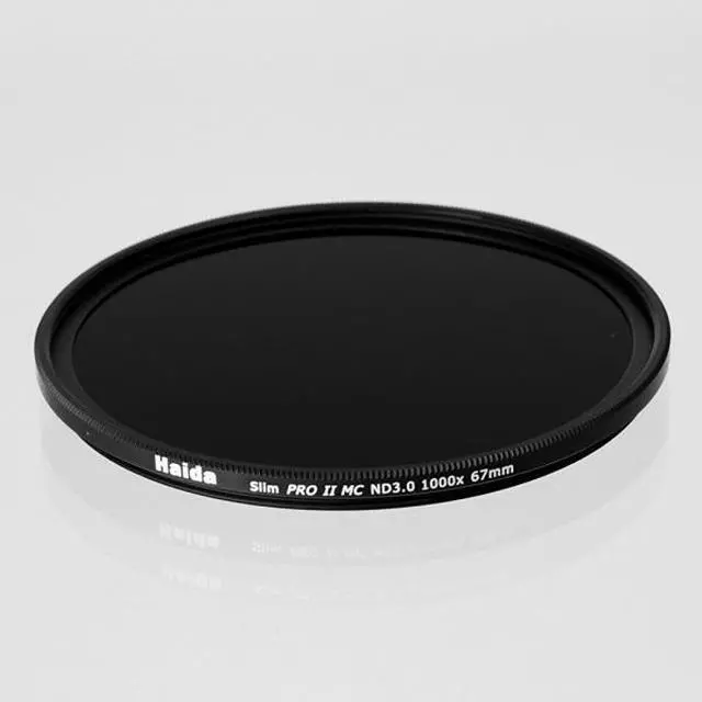 The Haida 67mm Slim Pro II ND 3.0 Filter is a circular ND filter that offers a 10-stop exposure reduction. This Slim Pro II ND filter is constructed from eight layers of multi-coated optical glass to provide superior image clarity, and can be used alongside other filters.