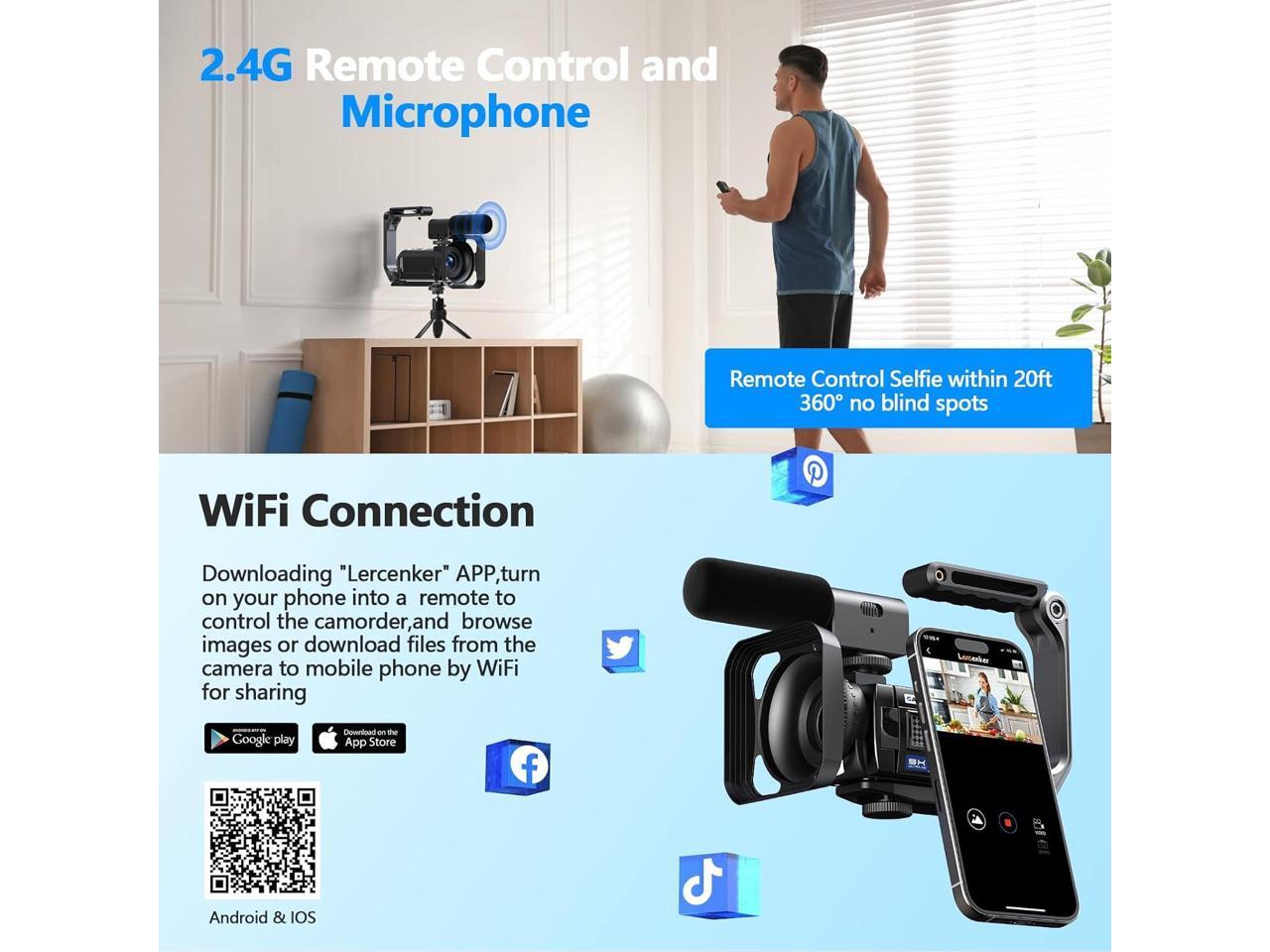 - IR Night Vision & Super Long Battery Life-The 5K camcorder comes with 2×1700mAh rechargeable batteries. One full-charged battery can be sustainably used for 90-110 mins. The camcorder video camera supports U3 speed 64GB SDHC Card (included). The vlogging camera youtube with infrared LED light allows you to shoot clear white/black photos or videos in the dark.