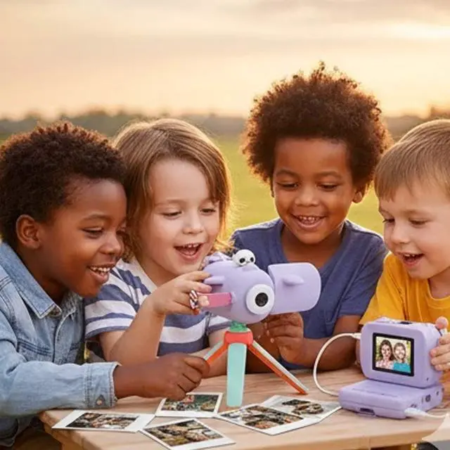 This kids camcorder is designed to inspire creativity and capture high-quality memories with ease. Capable of taking 16MP photos and recording 1920 x 1080 HD videos, it ensures every moment is preserved in crisp detail. The built-in selfie camera lets kids capture fun self-portraits, while the unique airplane-shaped design makes it easy and entertaining to use. Made with durable ABS plastic and food-grade silicone, this camera is safe and long-lasting, perfect for children aged 39. A rechargeable 750mAh lithium polymer battery provides extended playtime for endless adventures.