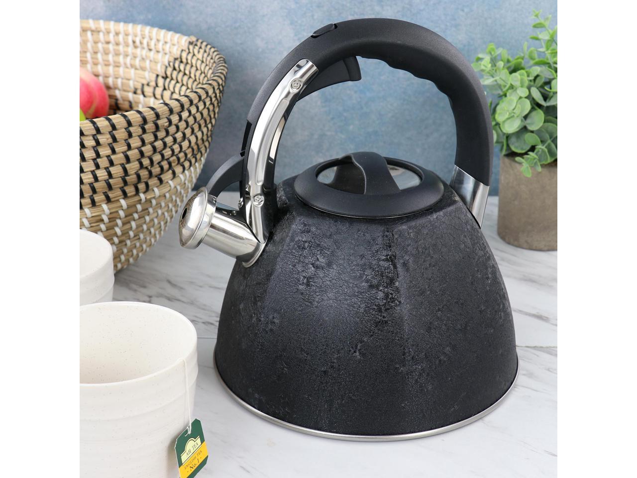 Mr. Coffee 3 Quart Stainless Steel Whistling Tea Kettle with Stay Cool Handle in Black 510116486M
