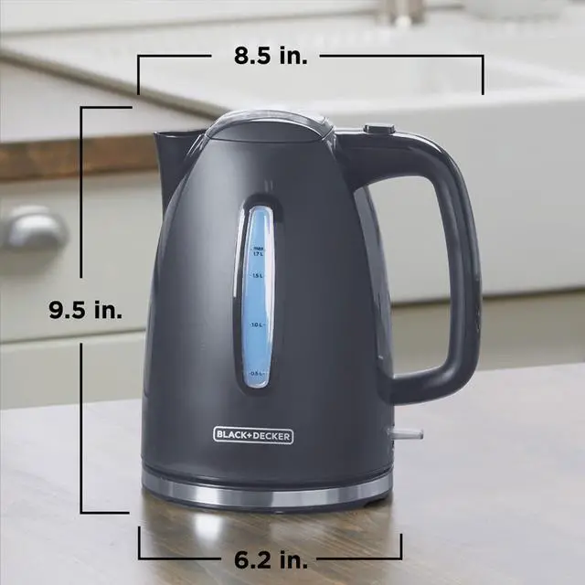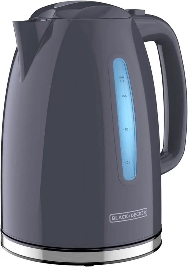 The Black and Decker Rapid Boil 7 Cup Electric Kettle Gray is ready to help kick start your mornings. This 7 cup kettle comes in a sleek illuminated gray design that will accommodate any kitchen. It boils water faster than a standard stove top or microwave. Compact for easy storage with it's cord storage, making it perfect for home, office, and dorm spaces.