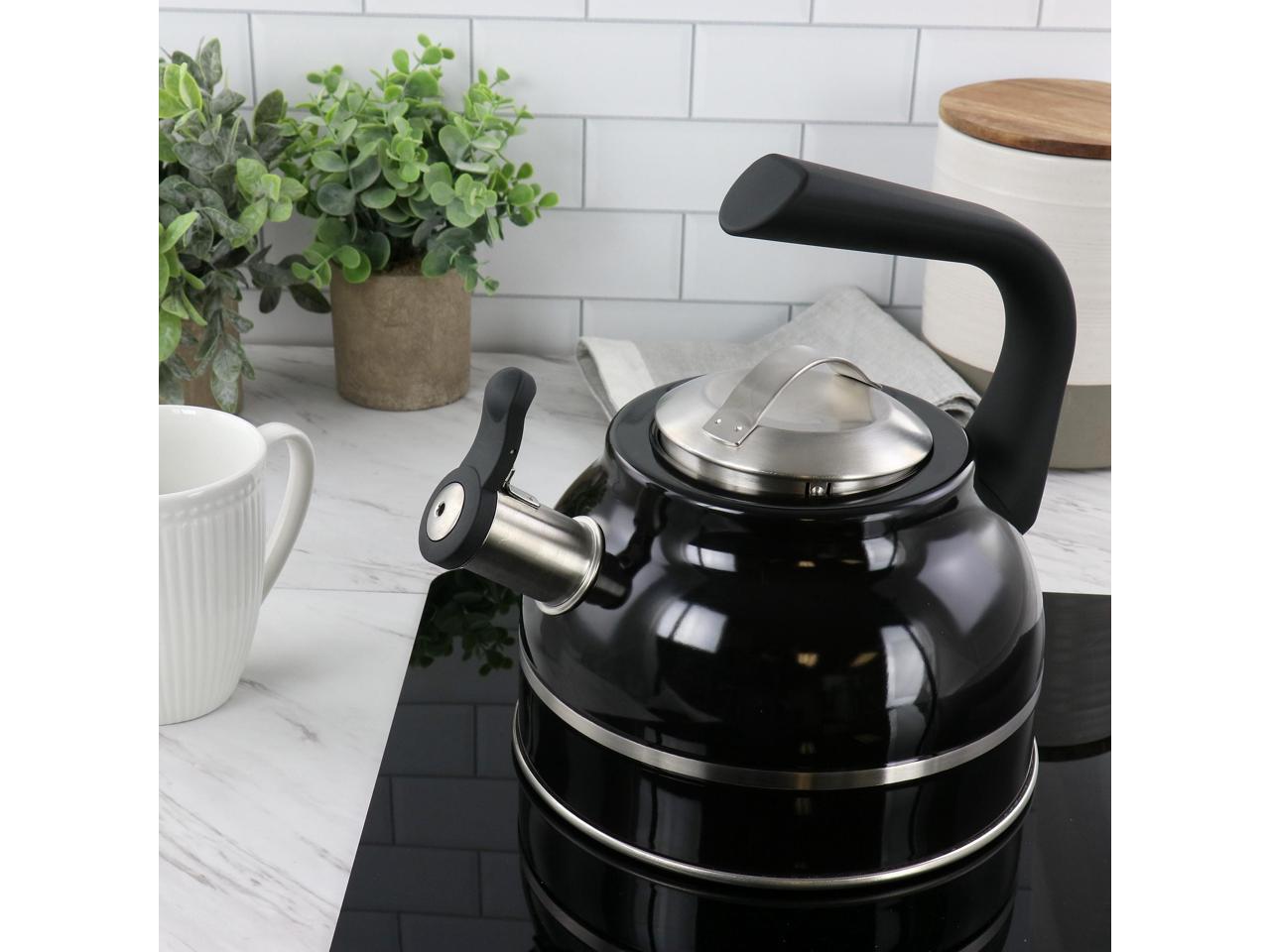 Kenmore Elite 2.3 Quart Stainless Steel Whistling Tea Kettle in Black 510119680M