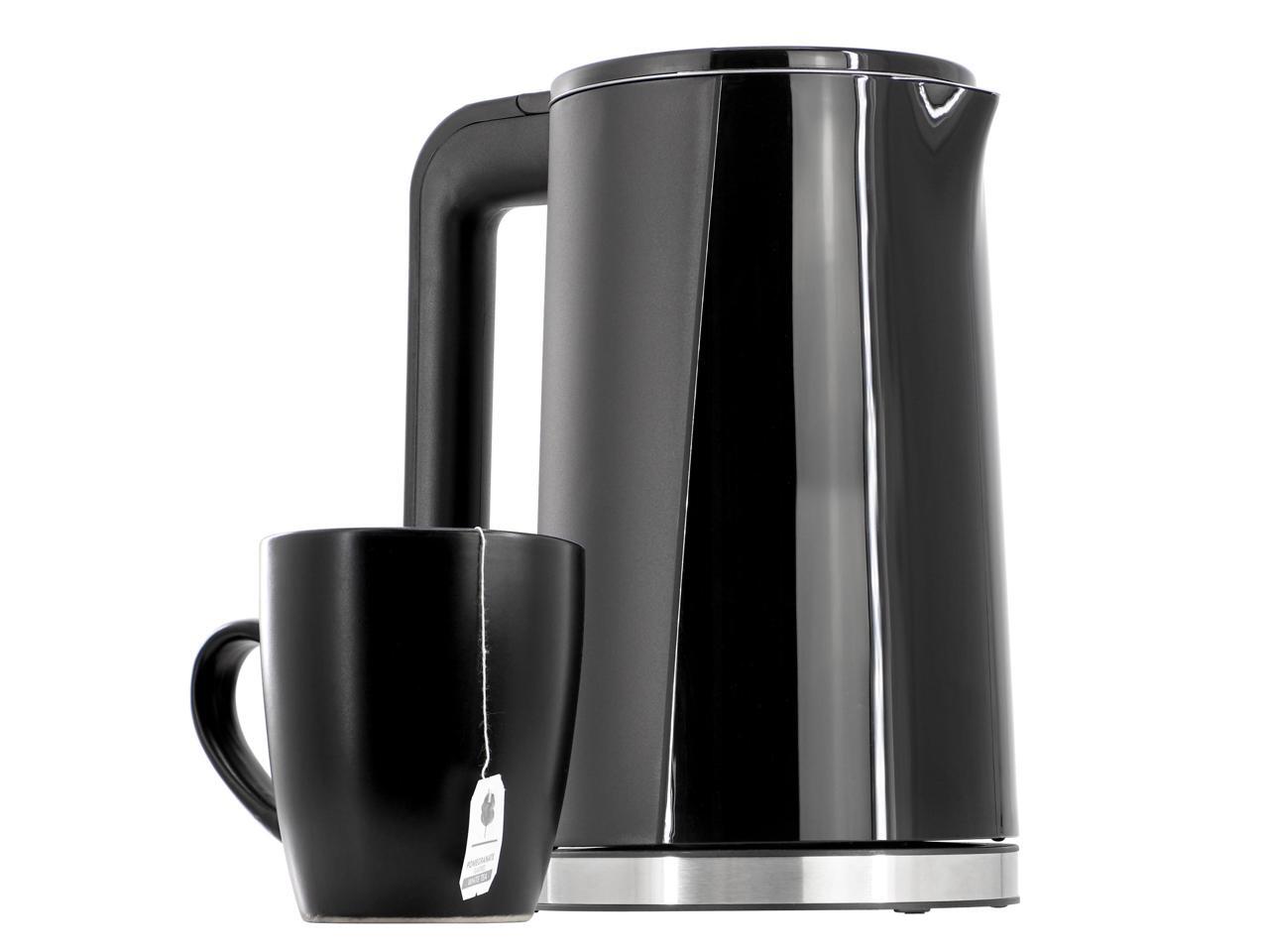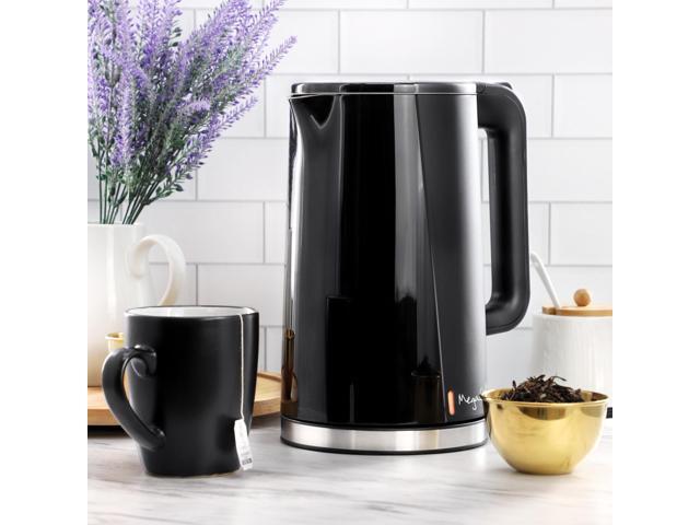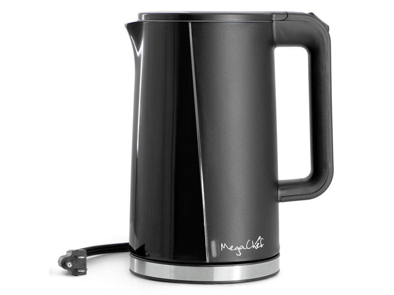 MegaChef 1.7 Liter Double Wall Stainless Steel Electric Tea Kettle in Black
