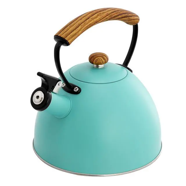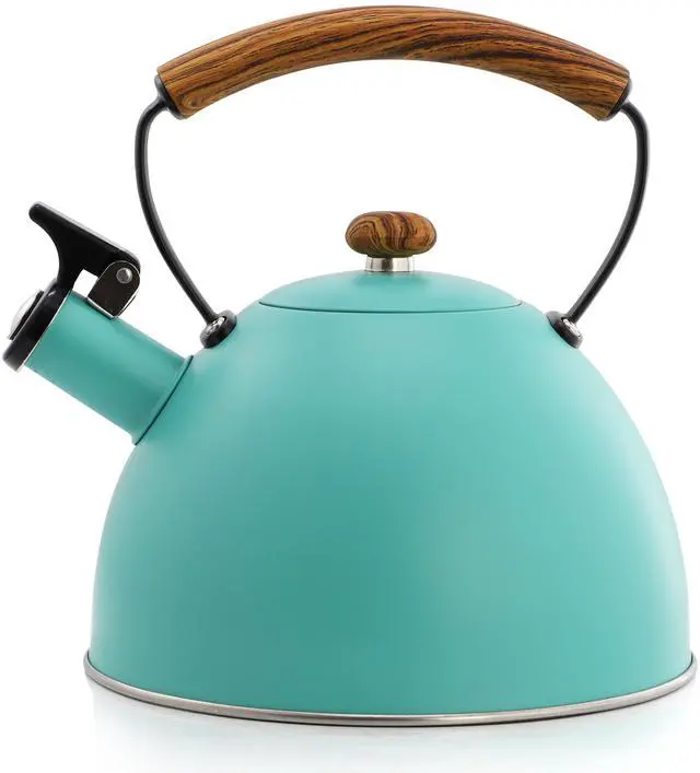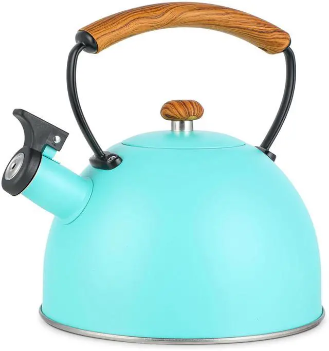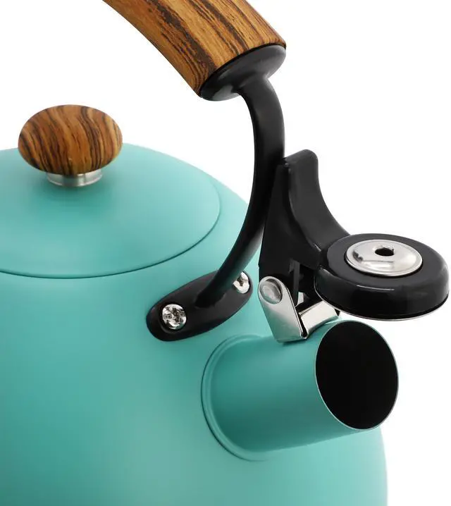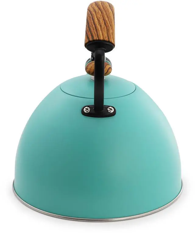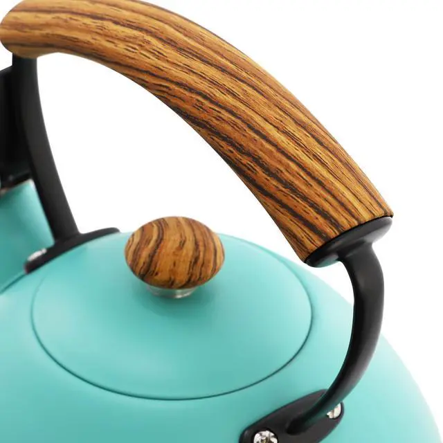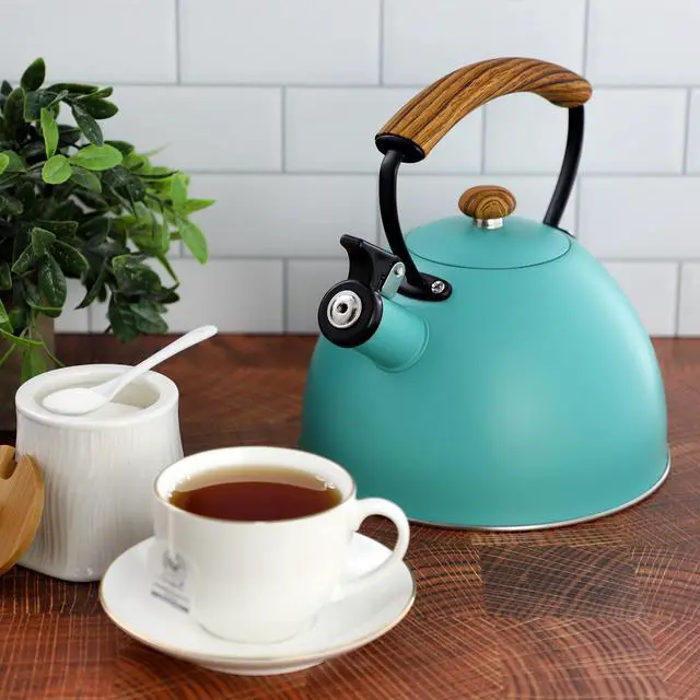 The MegaChef 3.2 Quart Whistling Tea Kettle is the perfect blend of style and functionality for your kitchen. Crafted from durable stainless steel, this kettle boasts a vibrant matte turquoise finish that adds a pop of color to your countertop. With a generous 3.2-quart capacity, it's large enough to heat water for multiple cups of tea or coffee, making it ideal for families or entertaining guests. The kettle features a whistling spout, alerting you when your water is boiling, so you never have to guess when it's ready.