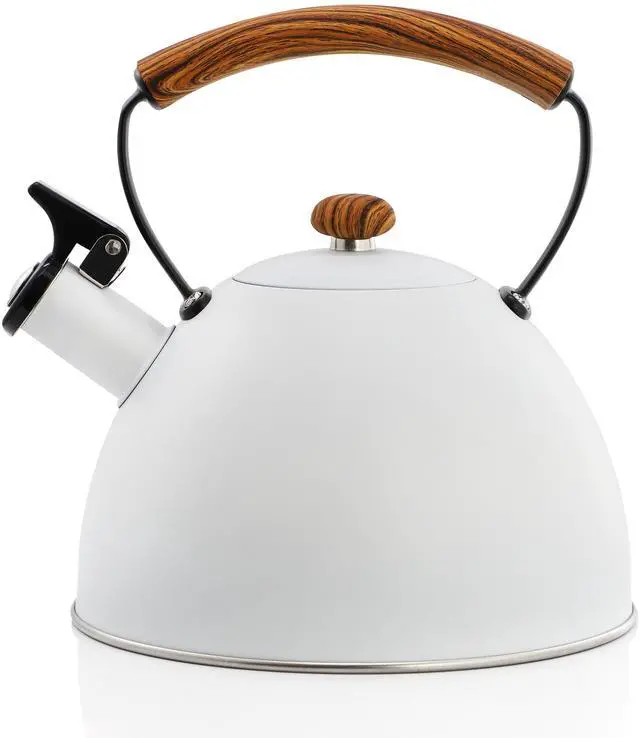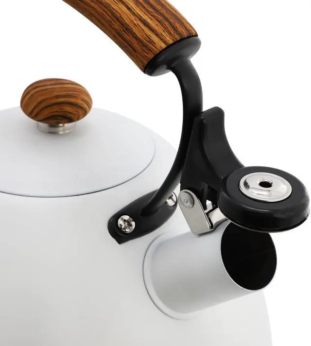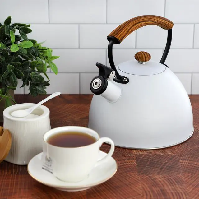 Designed for both safety and ease of use, the MegaChef Tea Kettle comes with a cool-touch nylon handle that remains comfortable to hold, even when the kettle is hot. The handle is fixed securely for added stability while pouring, offering a firm grip for a spill-free experience. Plus, it is induction safe, making it compatible with a wide range of stovetops. Whether you're a tea enthusiast or simply need a reliable kettle for daily use, this kettle's combination of practicality and style makes it a must-have addition to your kitchen.