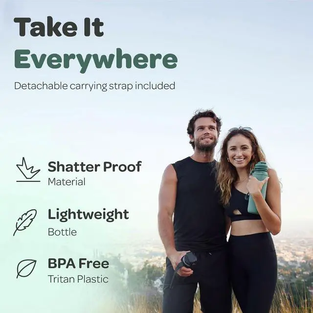 SAFE, NON-TOXIC, DURABLE This shatterproof, light and reusable water bottle is made of 100% BPA Free Tritan plastic. You can relax and enjoy your water clear of harmful chemicals, plastic taste or bad smell!