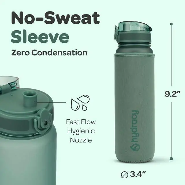 DRINK MORE WATER 100% Leakproof and Zero Condensation! No more puddle or sweating thanks to its neoprene sleeve. This large water bottle keeps inside all the healthy hydration that your body needs!