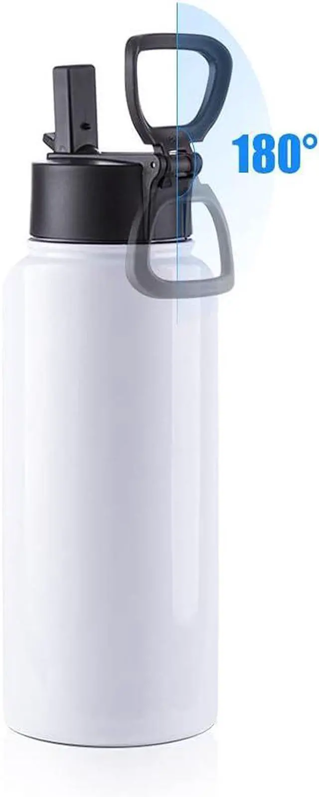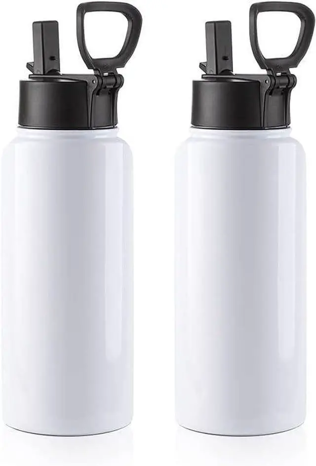 Specification: 32 OZ 950 ML sublimation white water bottle with individual white box, 2 pieces with brown gift box. Each water bottle with straw and portable handle.