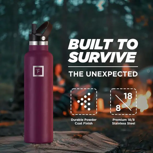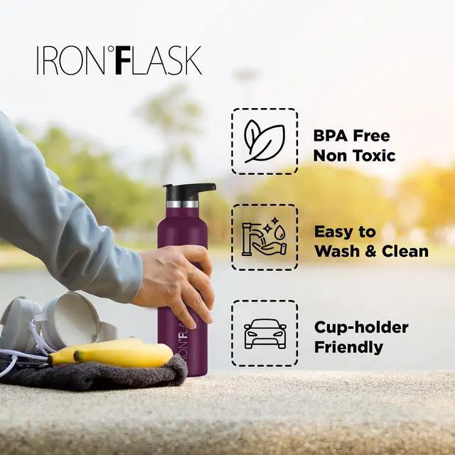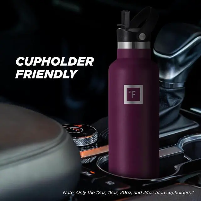 INSULATED SPORTS WATER BOTTLE: Goodbye sweat! The narrow mouth double wall insulation makes the Iron Flask sweat-free! It keeps your drink COLD for up to 24 hours, and HOT for up to 12 hours. *NOTE: ONLY the 12 Oz, 16 Oz, 20 Oz & 24 Oz fit in cupholders*