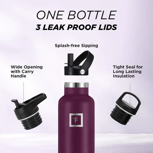 VERSATILE 3-LID DESIGN: The Iron Flask boasts a trio of leakproof lids the patented Straw Lid for easy sipping, the convenient Flip Lid, and the carry-friendly Handle Lid. Tailor your hydration experience for any activity!