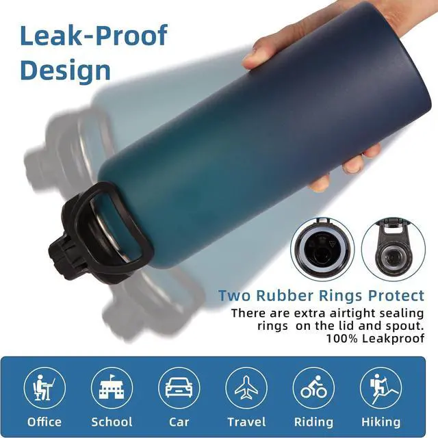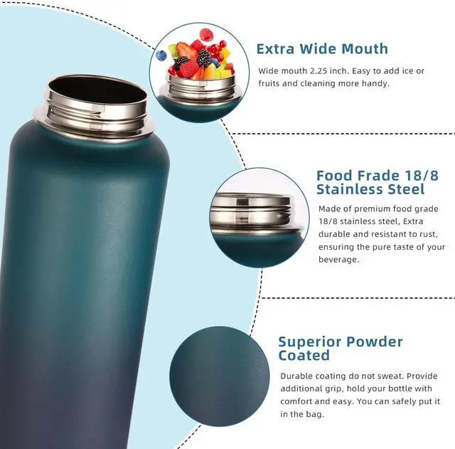 Vacuum Insulation and Wide HandleDesigned with double walled vacuum insulation, featuring superior insulation and a condensation proof design. Volhoply Water bottle can keep hot for 12 hours and keep cold for 18 hours, allowing you to enjoy your favorite flavor in the long run. Our lids handle have been improved. Able to hold three fingers, relieve finger pressure while walking. Made for outdoor lovers, our water bottle is the best choice!