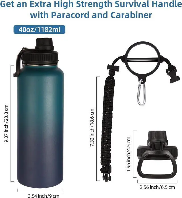 Humanized Paracord HandleVolhoply water bottle includes a removable survival paracord handle and a metal carabiner. It makes you easier to carry bottles. The carabiner on the handle can be hung on the backpack to help you free your hands. In special cases, our ropes can be disassembled and used for shoelace, hunting, fixed wounds, fixed emergency shelter and countless other uses. It is a ideal for outdoor activities.
