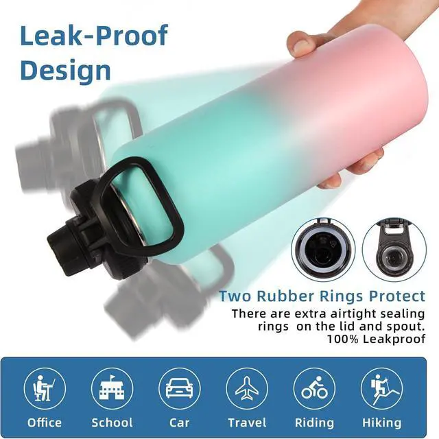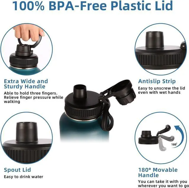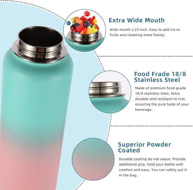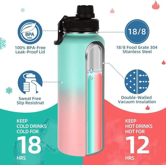 Vacuum Insulation and Wide HandleDesigned with double walled vacuum insulation, featuring superior insulation and a condensation proof design. Volhoply Water bottle can keep hot for 12 hours and keep cold for 18 hours, allowing you to enjoy your favorite flavor in the long run. Our lids handle have been improved. Able to hold three fingers, relieve finger pressure while walking. Made for outdoor lovers, our water bottle is the best choice!