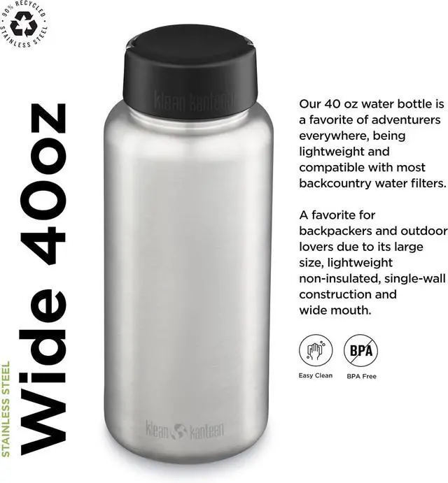 HIGH QUALITY & EASY TO CLEAN - All Klean Kanteens water bottles go through extensive quality control to ensure the HIGHEST QUALITY materials and construction. This means all seams, threads and stainless steel finishes are smooth and easy to clean.