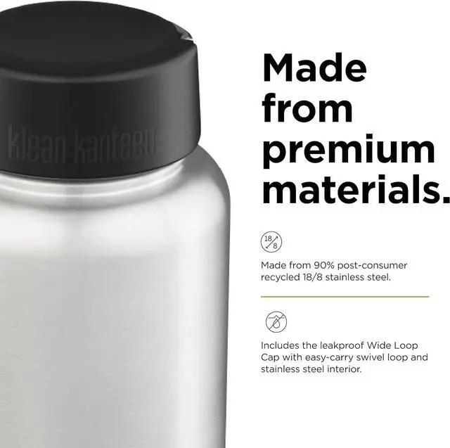Includes the leakproofWide Loop Cap with easy-carry swivel loop andstainless steel interior