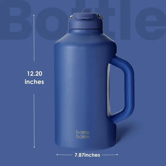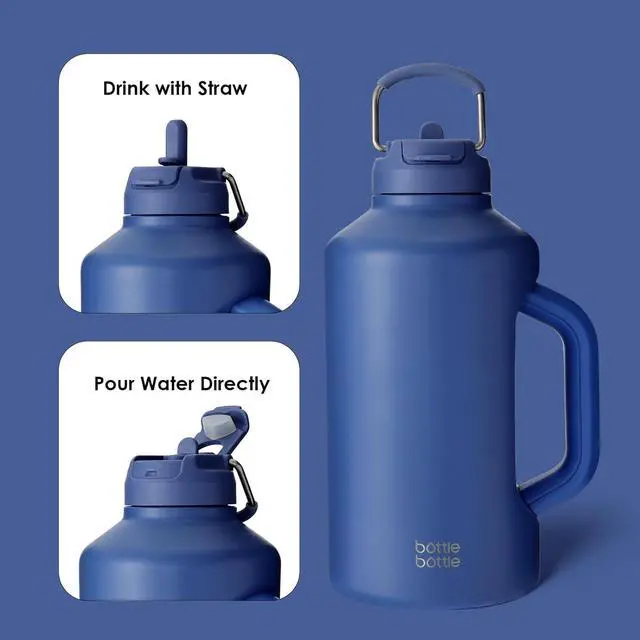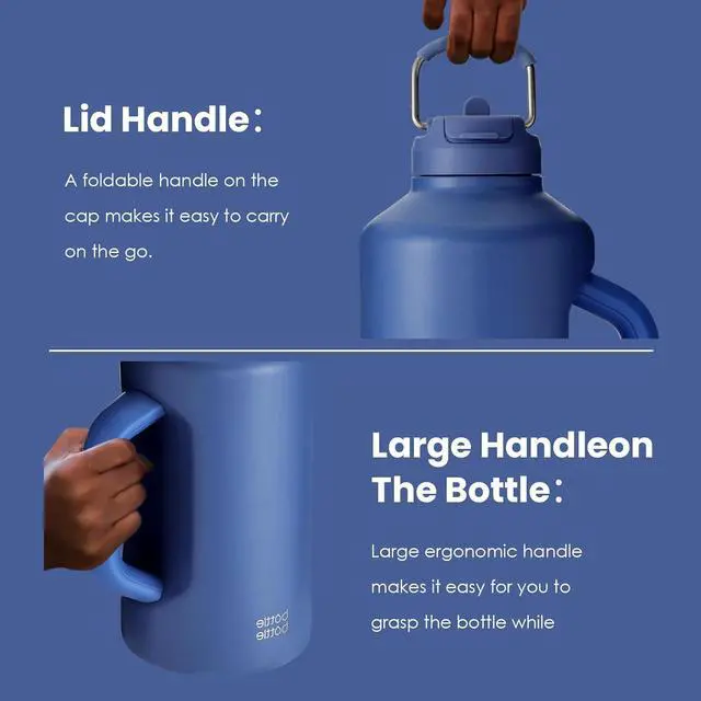 Dual-use Lid: Our half gallon water bottle have a dual-use lid, not only you can drink through the straw lid directly but also can twist the cap to pour the water. Whats more, the big handle can help you go to sports conveniently