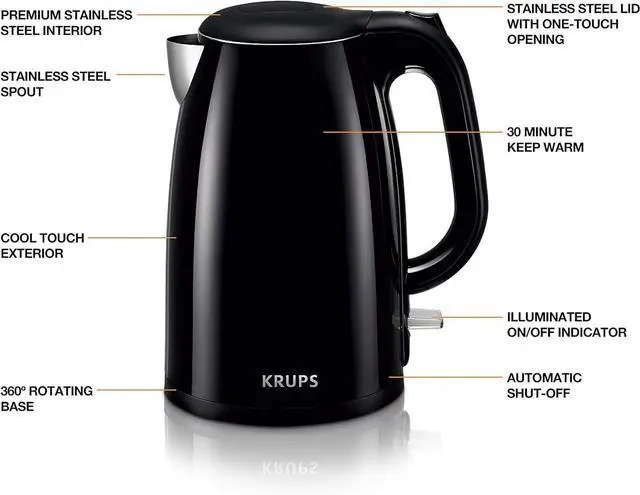 FAST BOILING: Quickly heat up to 1.5 L. of water for tea, instant coffee, hot cocoa, soup and more; 1500 Watts of heating power