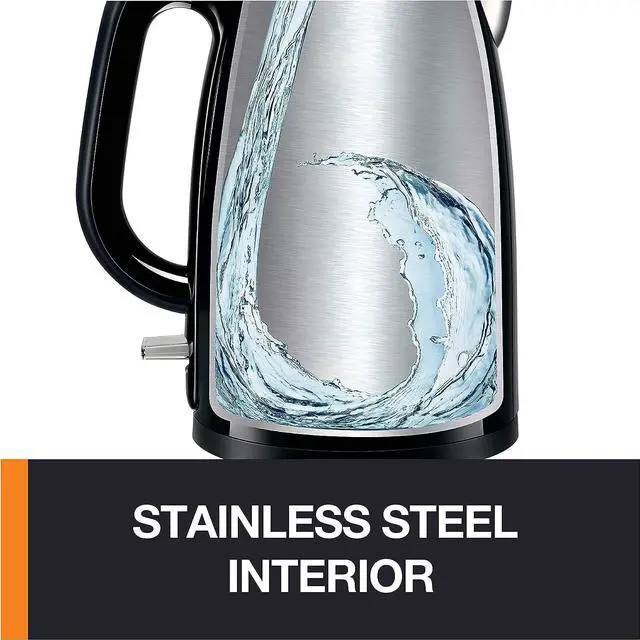 STAINLESS STEEL INTERIOR: 100% premium stainless-steel interior, including pot, spout, lid, and rim (hot water does not come in contact with any plastic); seamless surface for easier scale cleaning