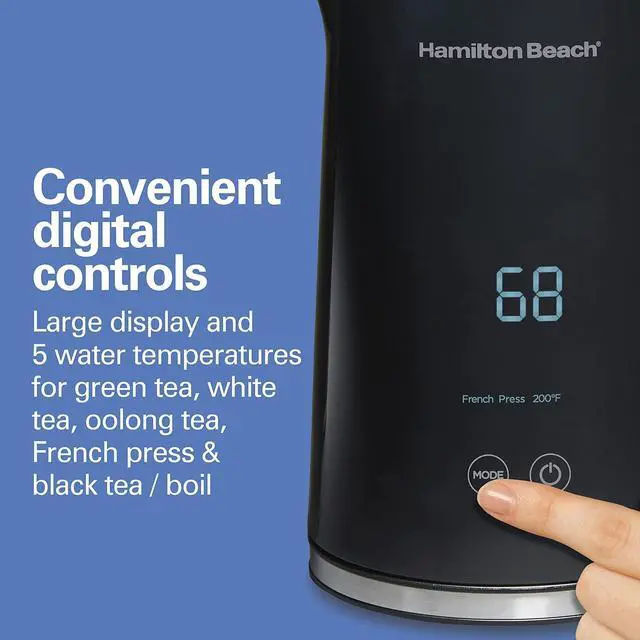 Hamilton Beach Digital Temperature Control Electric Tea Kettle, Hot Water Boiler & Heater 1.7L, 5 Preset Modes + Keep Warm, Fast Boil 1500 Watts, BPA Free, Cool-Touch Exterior, Black (41033)