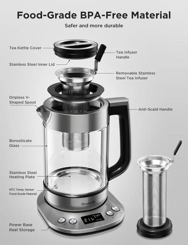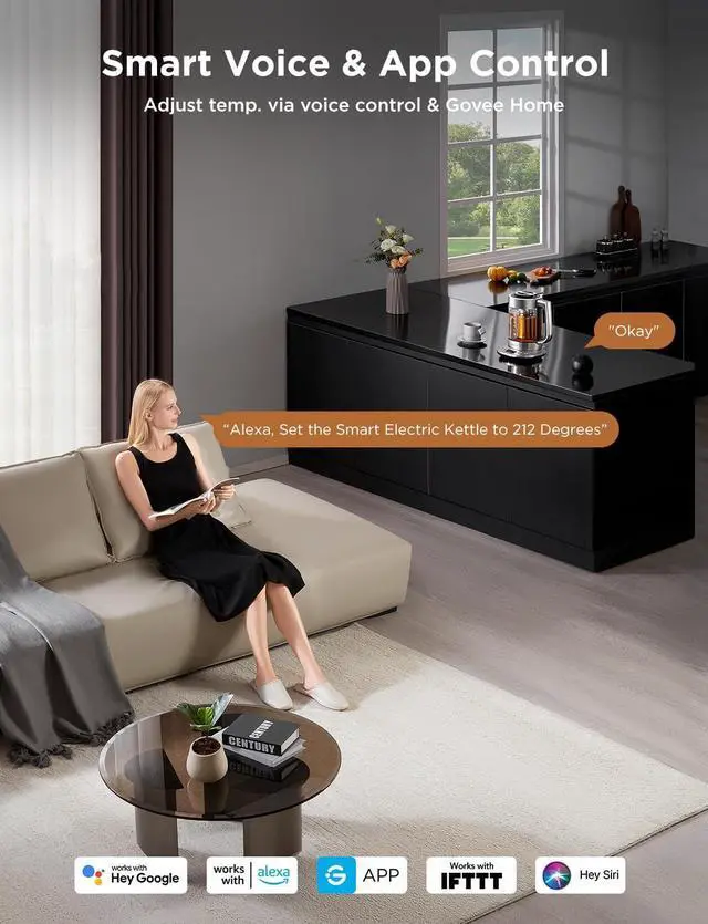 Smart Control: Connect your electric kettle to the app to schedule and adjust the temperature anytime. When boiled you will receive a notification. You can also voice control the electric tea kettle via Alexa & Google Assistant for added convenience.