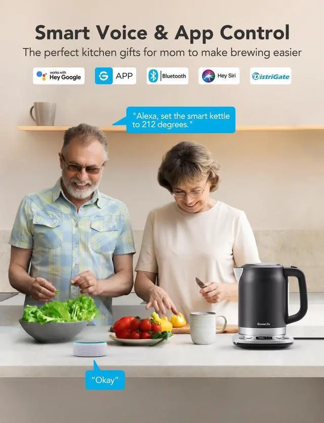 Smart Voice & App Control: Supports Wi-Fi or Bluetooth connection via app for scheduling, checking, and adjusting the temperature anytime. When it is done boiling app will notify you. You can also voice control the electric tea kettle via Alexa, Google Assistant for more convenience.